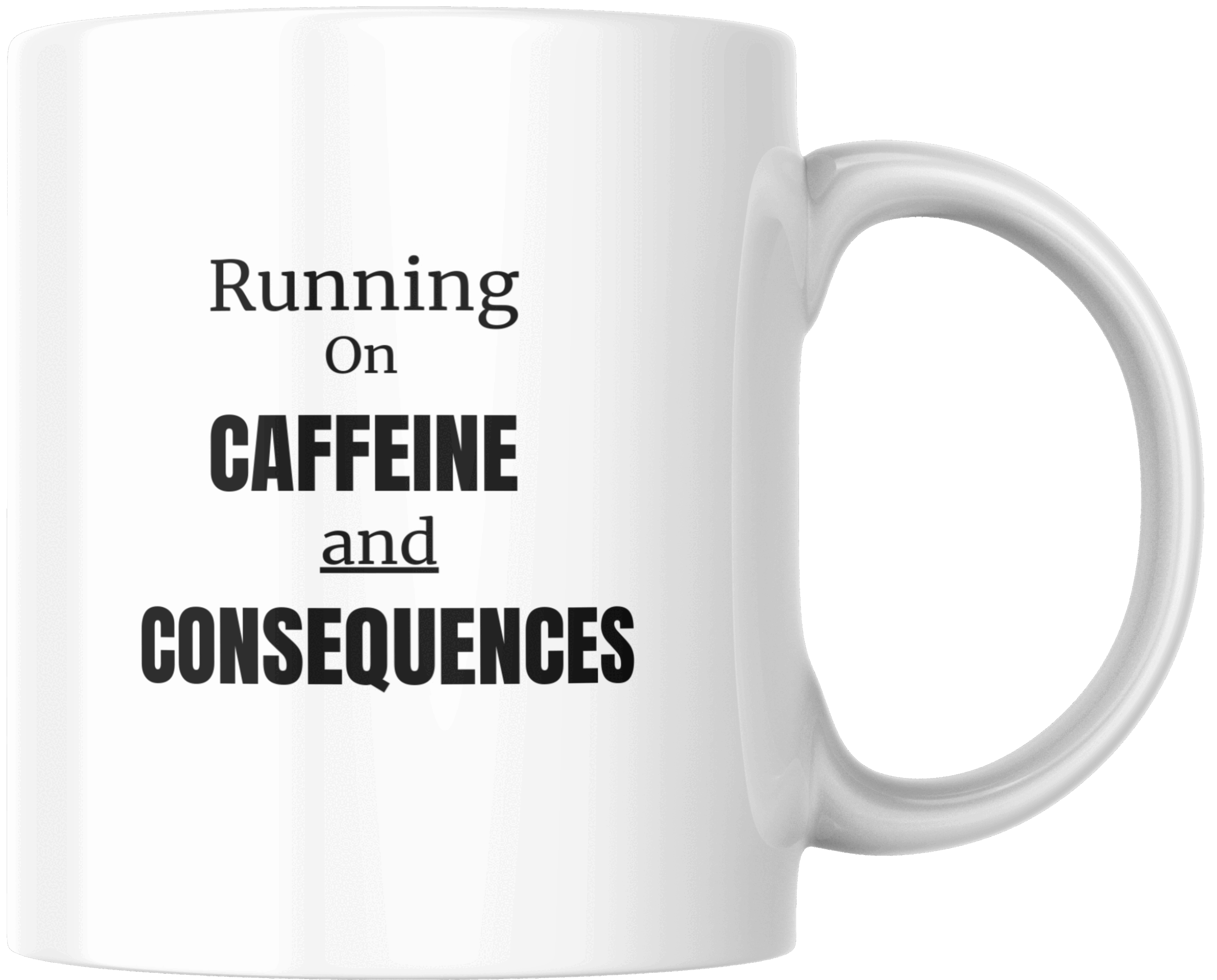 15oz white ceramic mug. Dishwasher and microwave safe.
