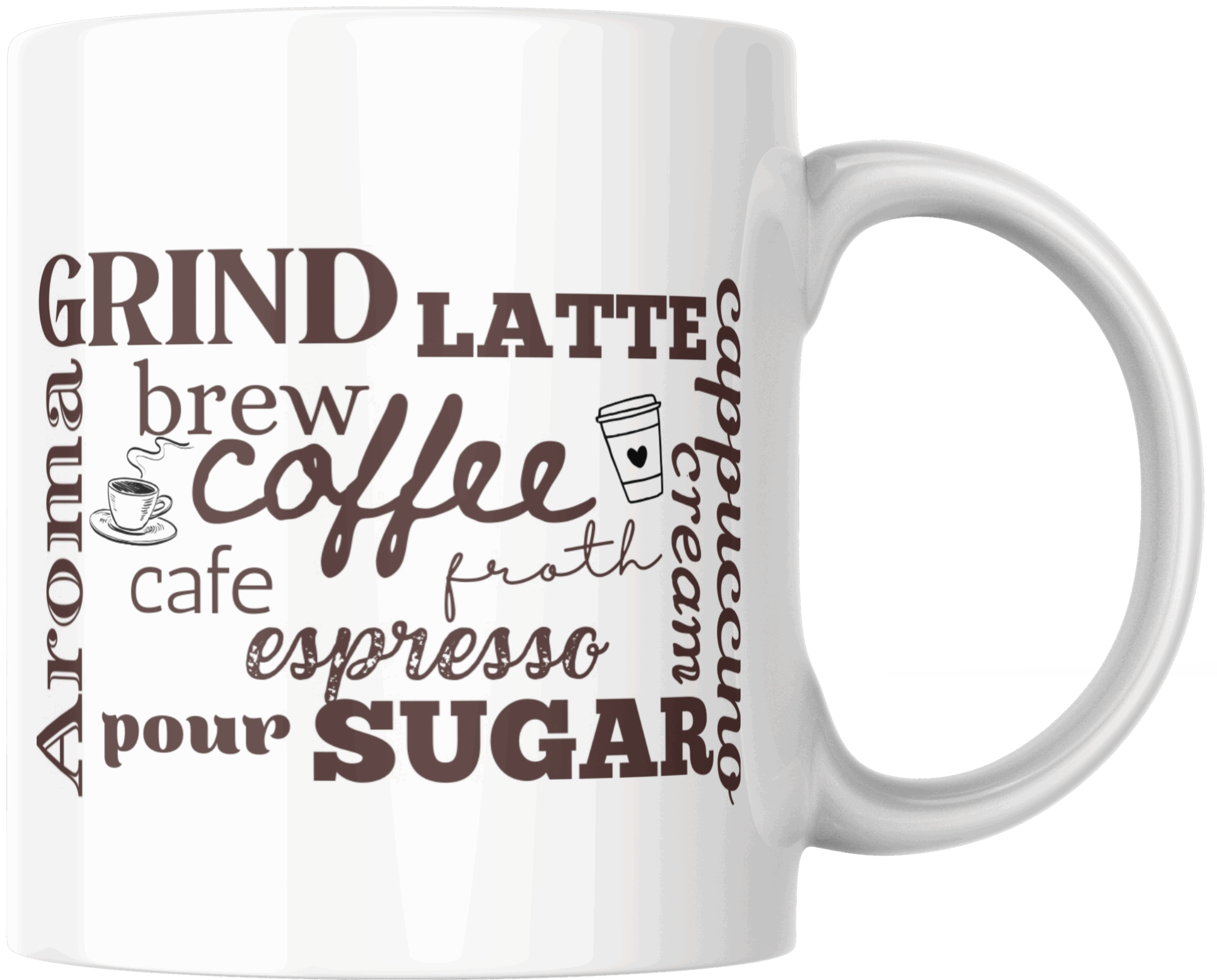 15oz white ceramic mug. Dishwasher and microwave safe.