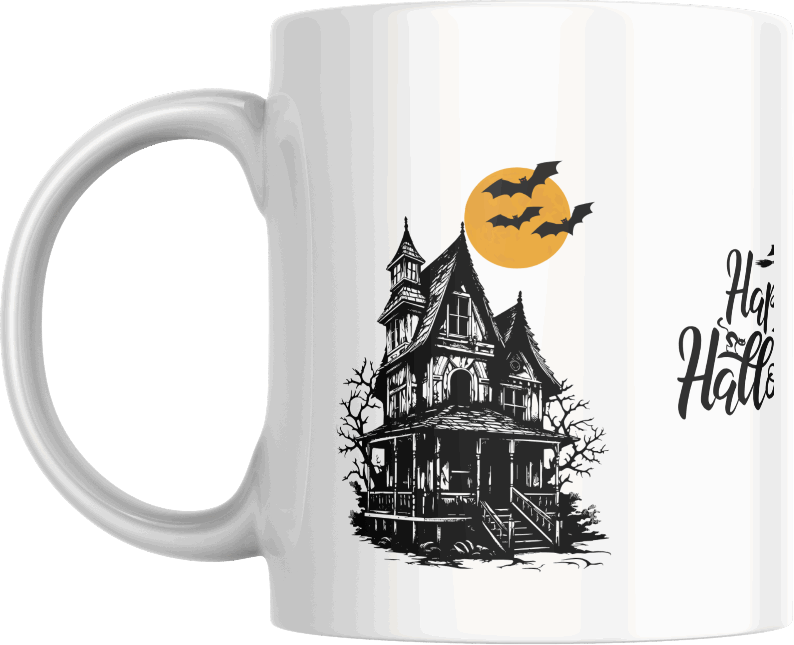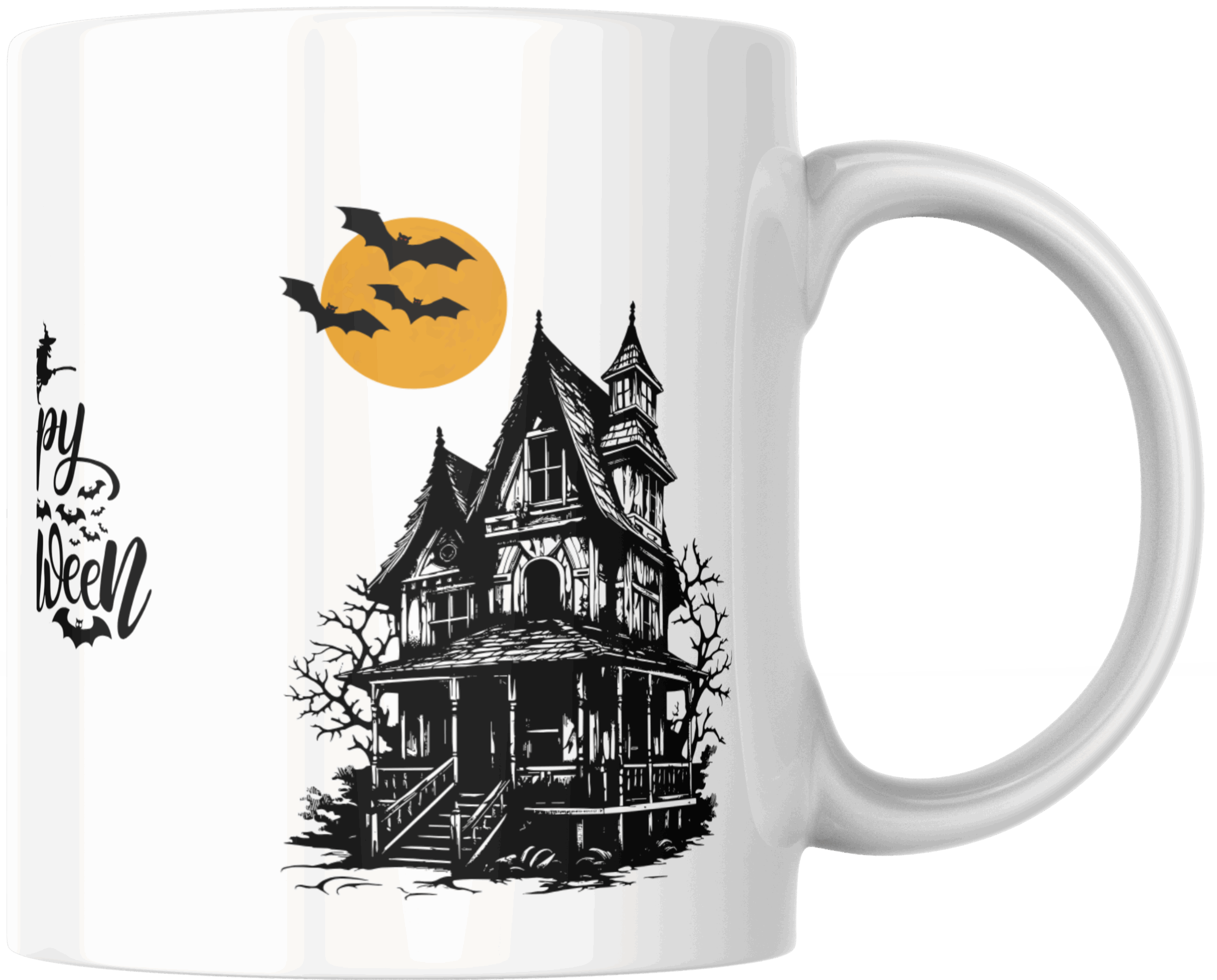 15oz white ceramic mug. Dishwasher and microwave safe.