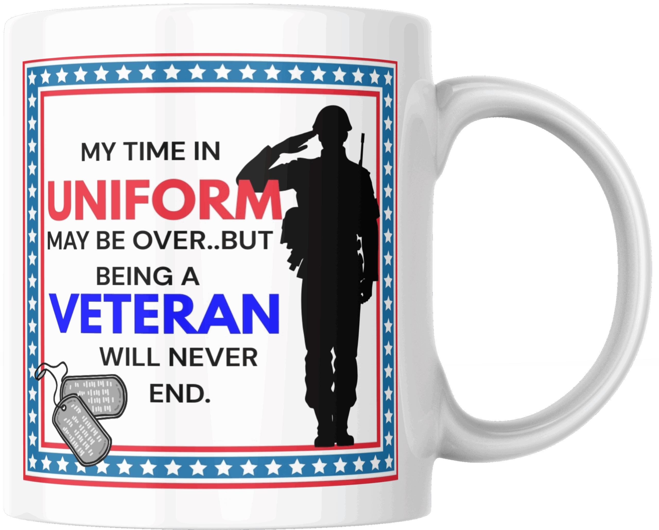 15oz white ceramic mug. Dishwasher and microwave safe.